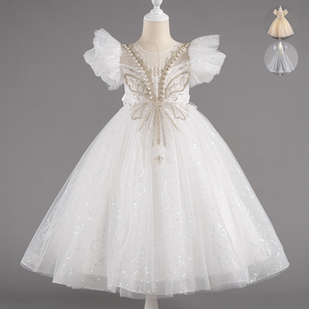 Trẻ Em Ăn Mặc Cho Cô Gái Màu Xám Trắng Sequin Ngắn Tay Áo Buổi Tối Dresses Cho Piano Hiệu Suất Trẻ Em Wedding Dresses